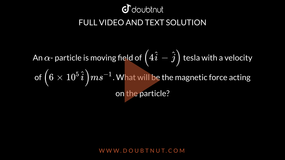 An Alpha Particle Is Moving In A Magnetic Field Of 3hati 2hatj Tesla With A Velocity Of 5xx10 5hati Ms 1 What Will Be The Magnetic Force Acting On The Particle