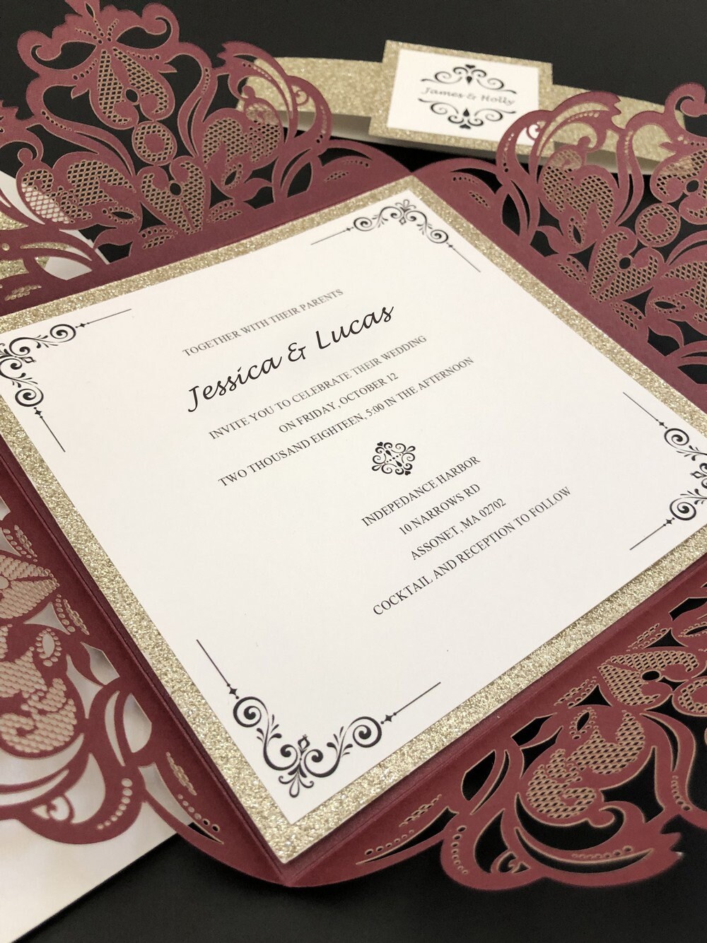 Buy Burgundy And Gold Laser Cut Wedding Invitations With Free Rsvp Online In India Etsy